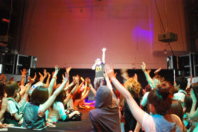 ライブに登場したのは、369(ミロク)!登場早々会場を盛り上げてくれました!面白いトークとアツイメッセージの詰まった歌にお客さんもノリノリ!