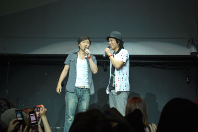 あの有名な「いらっしゃいませ」が「エアロスミス」に聞こえるコンビ二店員ネタを盛り込んだコントやNHKみんなのうたで放映されたアップダウン作の「ぬか漬けのうた」をアカペラで披露!結成の秘話や来場者に向けてあつい一言もあり笑いの絶えない時間になりました! |